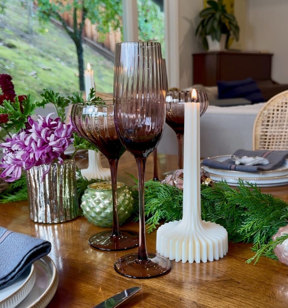 To create a warm and inviting tablescape, incorporate low, sculptural candle holders. Candlelight instantly elevates the atmosphere, and choosing candle holders with unique shapes or materials adds an artistic element to your table decor. Low candle holders keep the light soft and intimate without blocking sightlines, making them perfect for dinner parties and seasonal hosting.